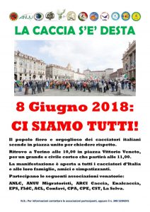 Si pubblica il comunicato stampa diramato dal Presidente Regionale della F.I.d.C. Andrea Campanile in merito alla manifestazione dei cacciatori di Venerdì 8 giugno 2018 a Torino.
